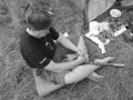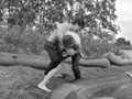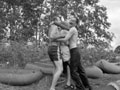 Бойцы лечат Бару ожог спины |